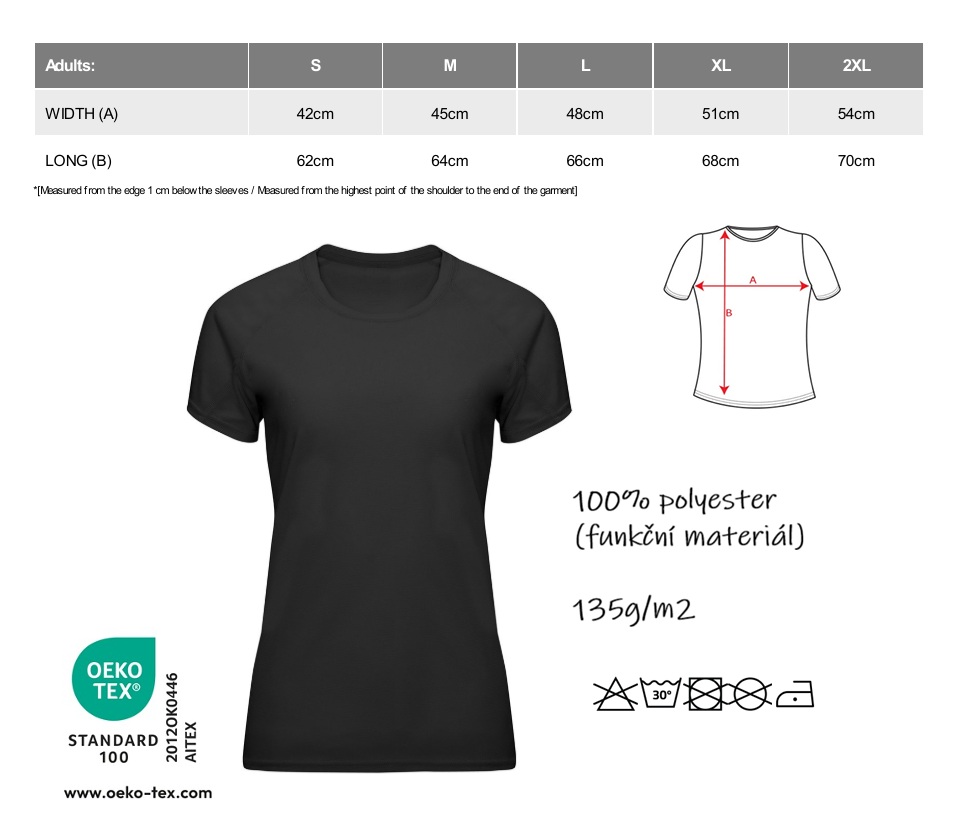 Dostupné ve velikostech: S-XXL v dámském střihu, S-4XL v pánském střihu