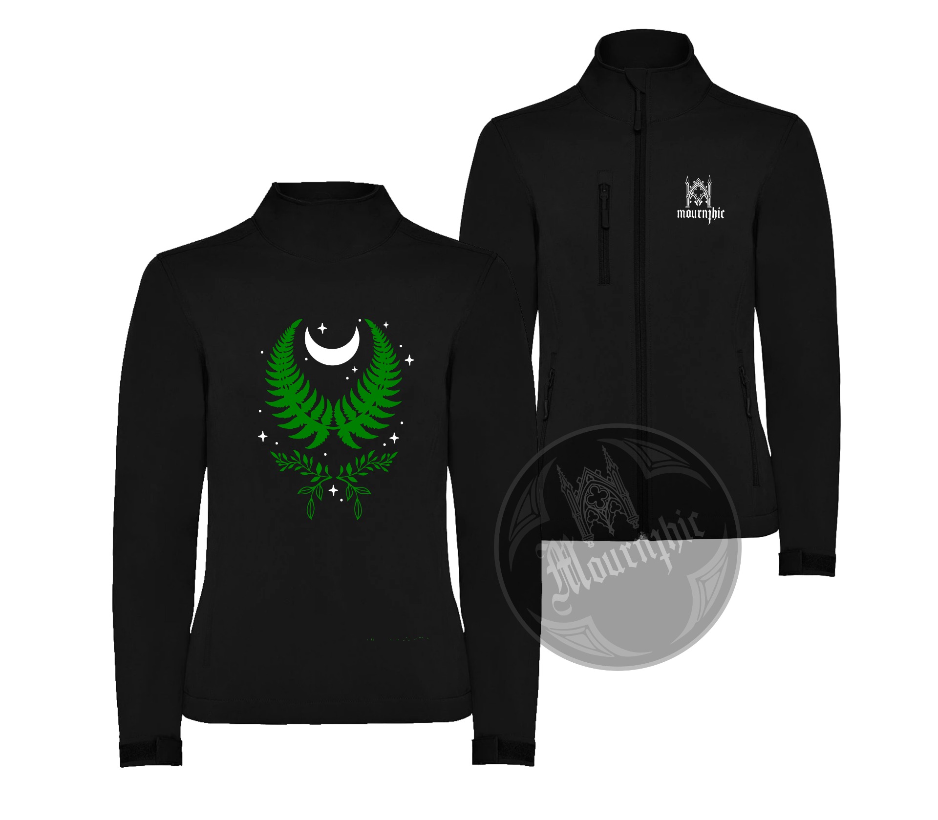 Černá sofshellová bunda s motivem kapradin
