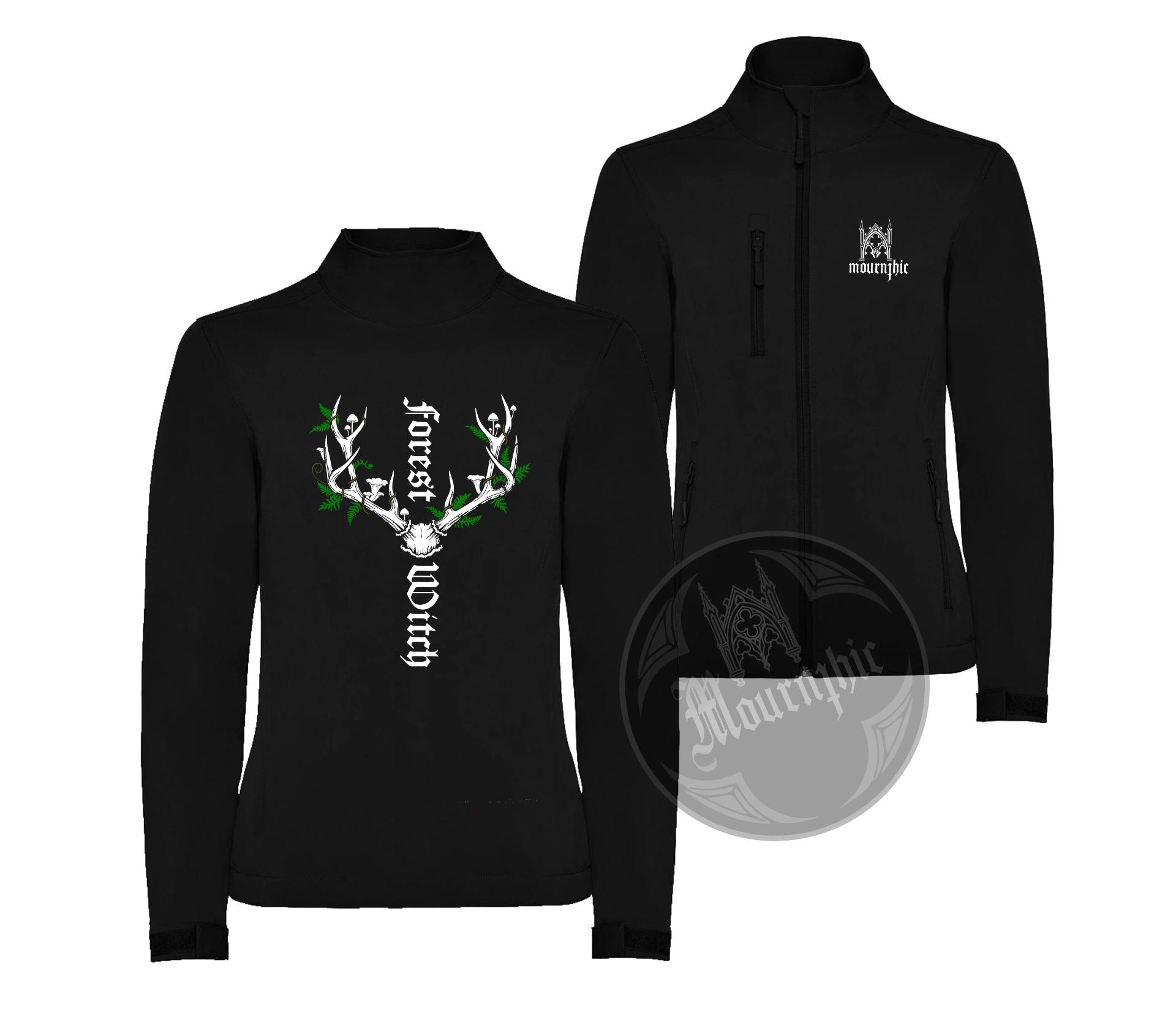 Černá sofshellová bunda s čarodějným motivem
