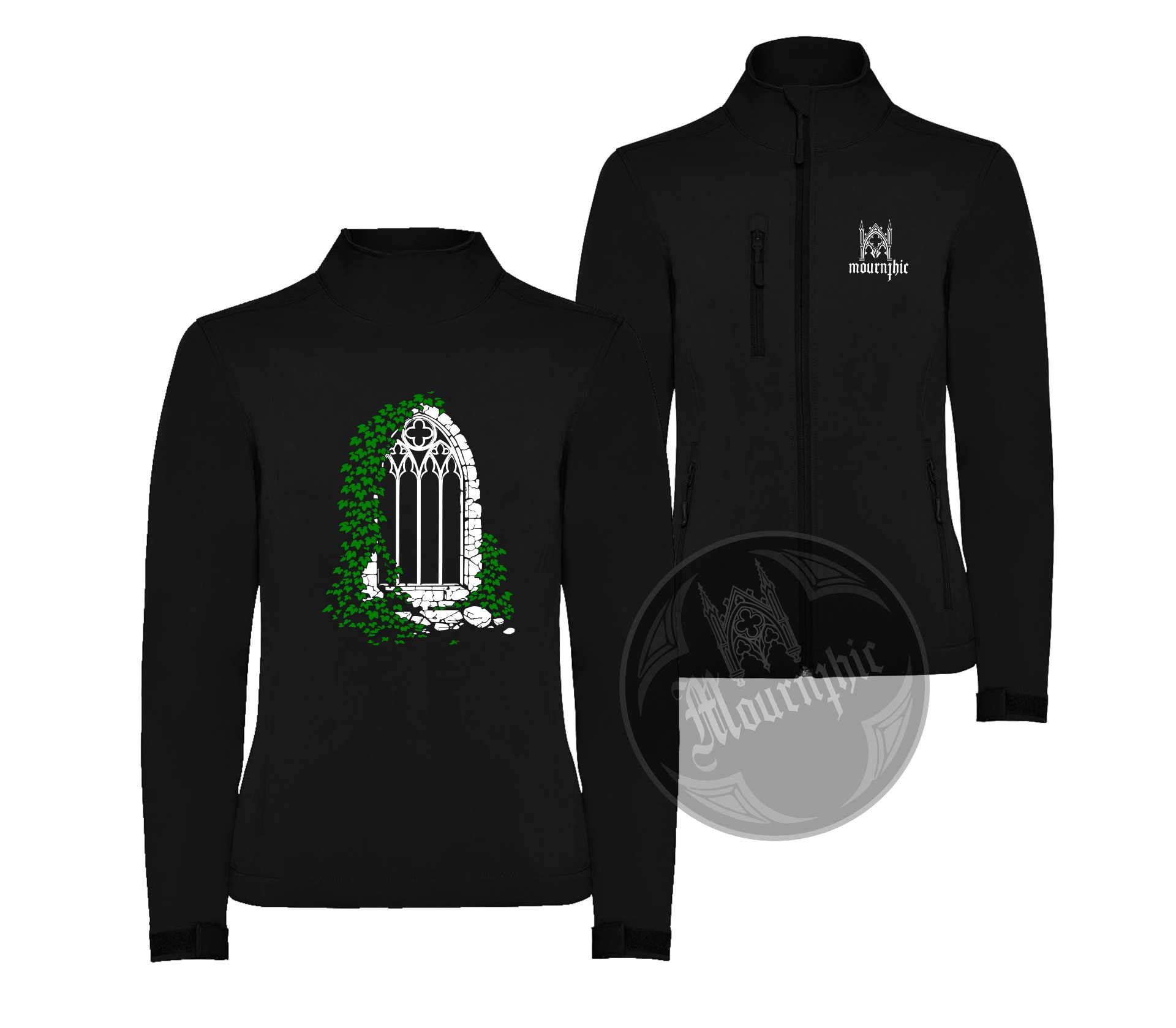 Černá sofshellová bunda s gotickým motivem