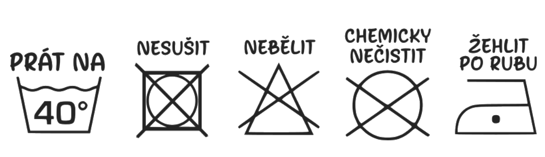 Textil nesušíme v sušičce, nepoužíváme bělící prostředky ani chemické čističe.